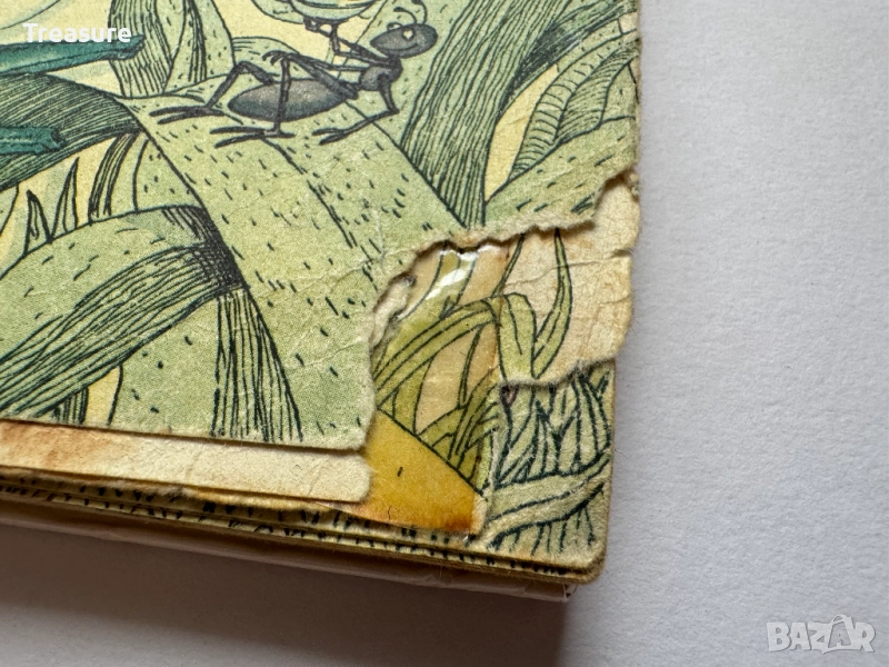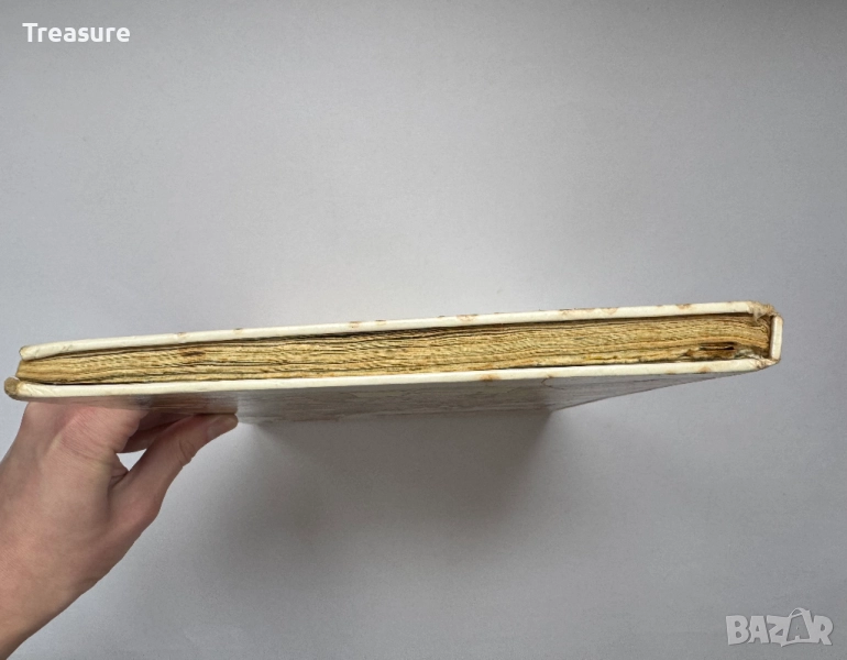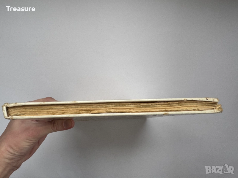 Забележка: стара книга в захабен вид. Драскотини, лепена с тиксо, драскано с химикал, захабени ръбове на страници, откъснати ъгли на някои страници, жълтеникави петна по хартията