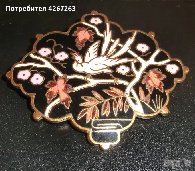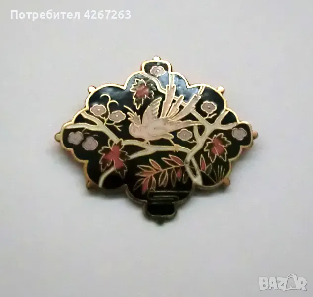 Винтидж дамска брошка феникс, клетъчен емайл върху медна основа → Обява 48466289