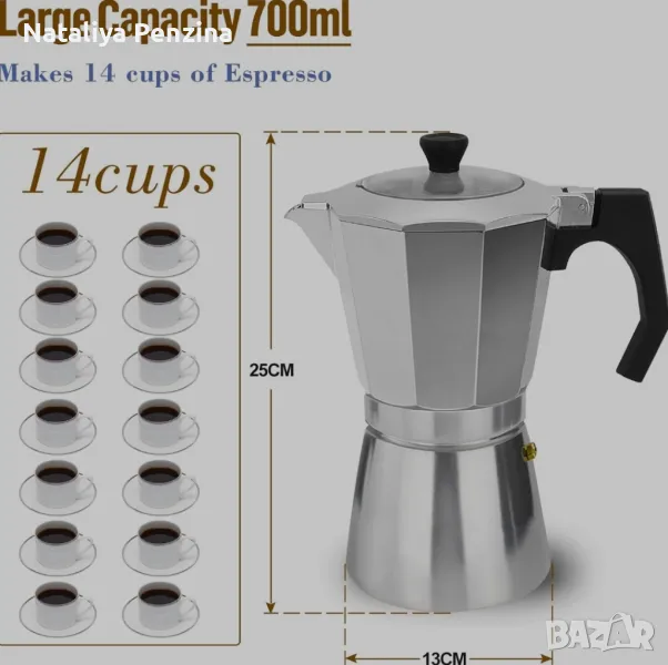 Италианска кафеварка Moka Express ROSSETTO от алуминий - (14 чаши 700 ML) → Обява 48466672