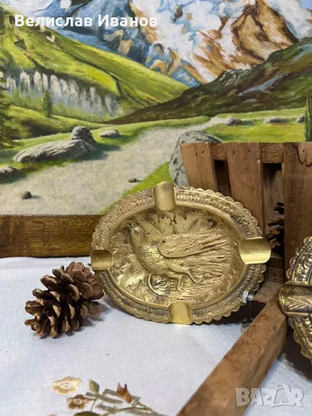 Стари месенгови пепелници с ловен мотив фазани. Отлично състояние. → Обява 48467304
