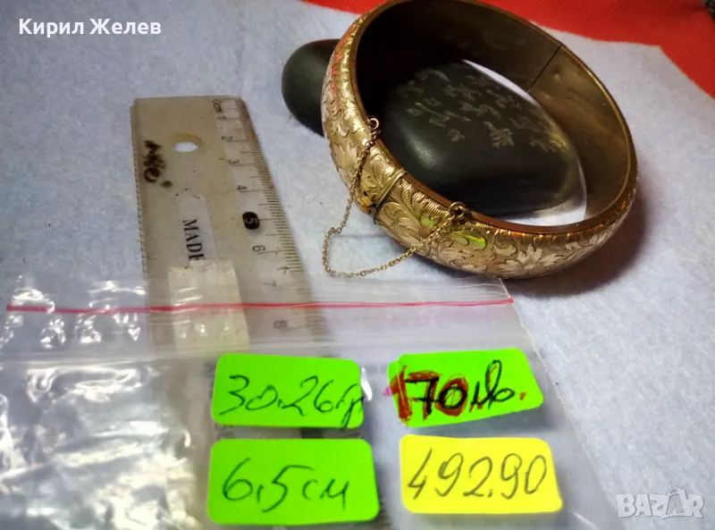 МАЙСТОРСКА РЪЧНА ИЗРАБОТКА с 2 МАРКИРОВКИ - За ПОЗЛАТАТА и ПЕЧАТ на АТЕЛИЕТО на БИЖУТЕРА. / Пускам СЕРИЯ от майсторска ръчна изработка старинни и нови СРЕБЪРНИ БИЖУТА - брошки, медальони, камеи, пафти, гривни, ланци, колиета, някои са инкрустирани със скъпоценни или полускъпоценни камъни. Всичките са ТЕСТВАНИ ПРОФЕСИОНАЛНО върху лидийски камък с пробер - киселина за сребро, като особено по-старите, ръчно изработени и без маркировка които са, е заснето и резултата на камъка - яркочервеният цвят при натъркване и капване на киселината показва, че са от масивно СРЕБРО ВИСОКА ПРОБА. Има и накити от САЧАН /нископробна сребърна сплав, с която са работели старите майстори - куюмджии от периода на ВЪЗРАЖДАНЕТО и края на 19-ти век/, мед, бронз и благородна стомана с позлата или посребряване. Снимките ги ОНАГЛЕДЯВАТ! Имам НАД 27000 обяви в профила си - За ВСЕКИ по НЕЩО...! Изпращам по Еконт или Спиди с опция Преглед/Тест и отстъпка-транспорт.