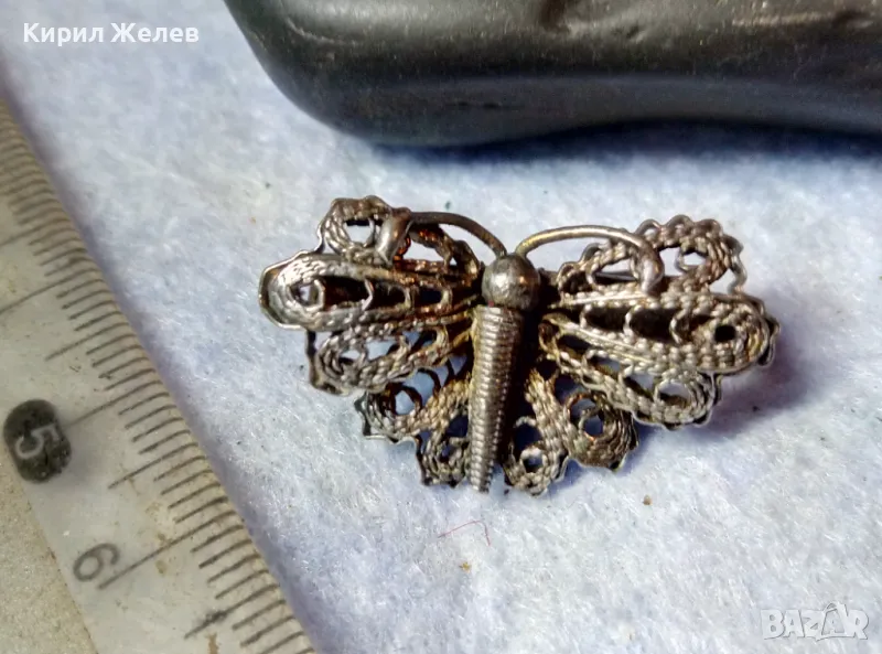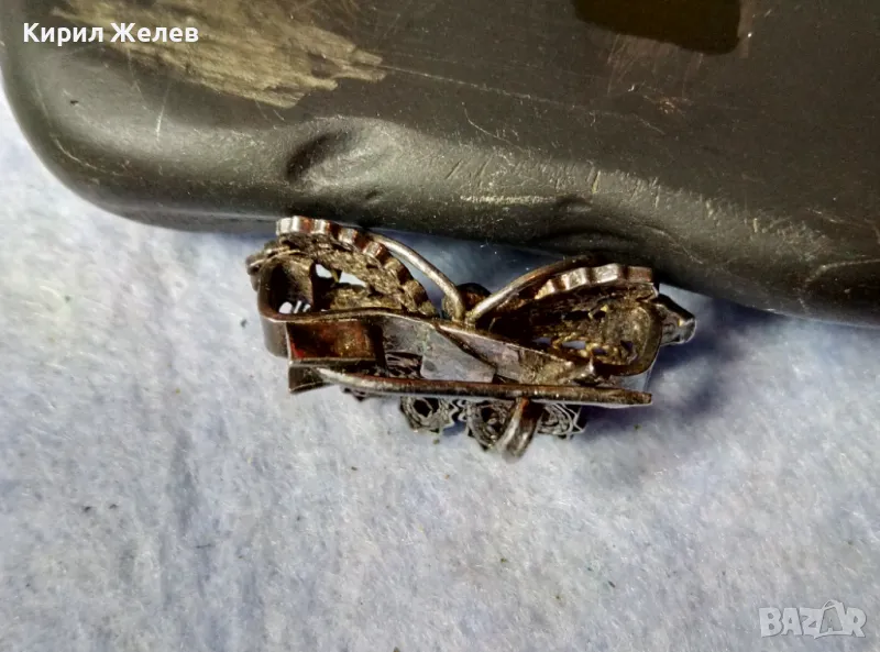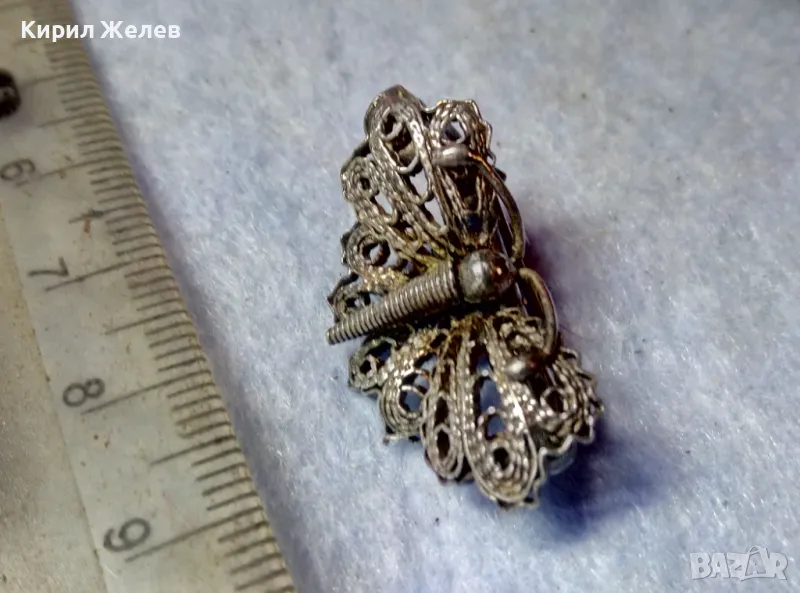 СТАРА КРАСИВА ФИГУРАЛНА ФИЛИГРАННА ПОСРЕБРЕНА БРОШКА ПЕПЕРУДА от БЛАГОРОДНА СТОМАНА 31413