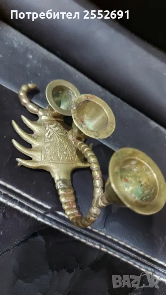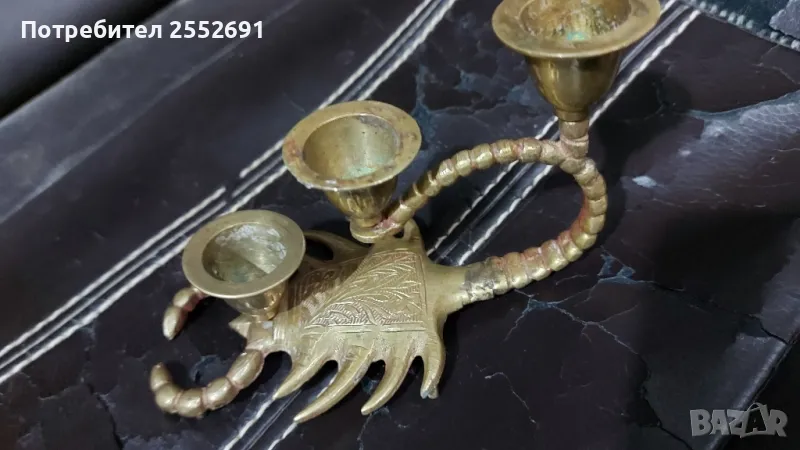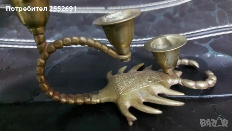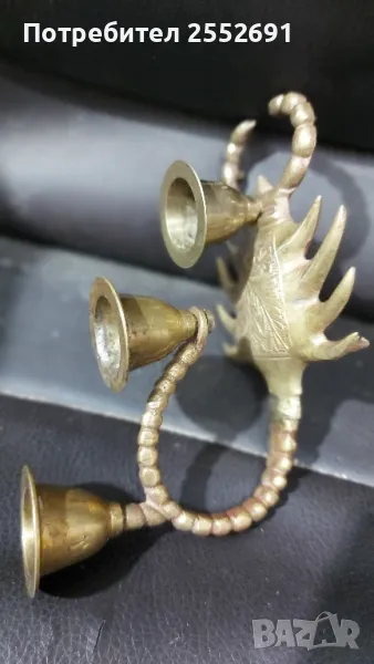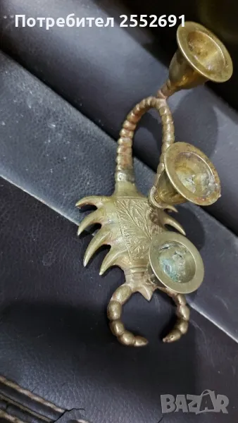 Бронзов/месингов/ свещник тройка във формата на СКОРПИОН. Височина-8,5см. Дължина- 13см. Ширина- 7см.