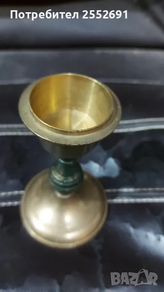 Масивен бронзов/месингов/ свещник. Височина- 12,5см. Диаметър на основата- 8см. Диаметър в горната част- 4см.