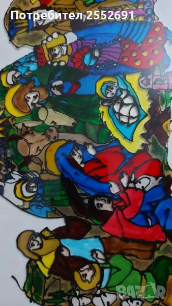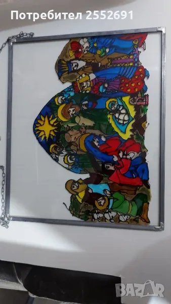 Декорация/ ВИТРАЖ/- рождество ХРИСТОВО. Ръчно изрисувана на стъкло с метална рамка. Размери- 30/25см.