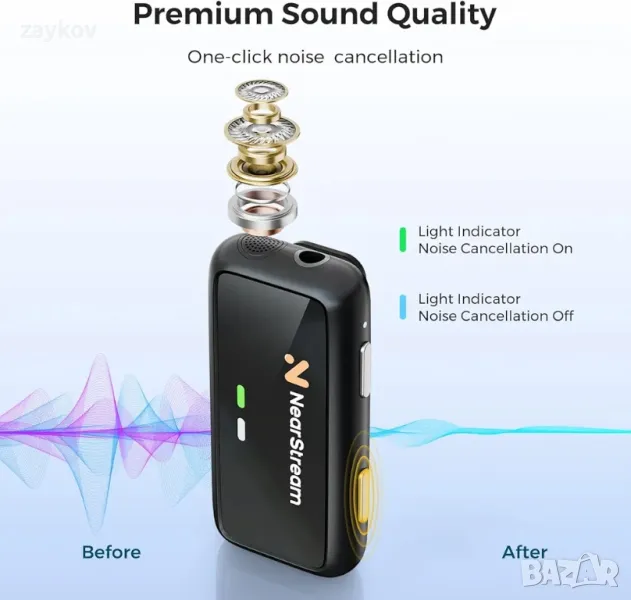 безжичен микрофон с щипка ефективно елиминира 95% от фоновия шум и осигурява кристално чисто качество на звука.
