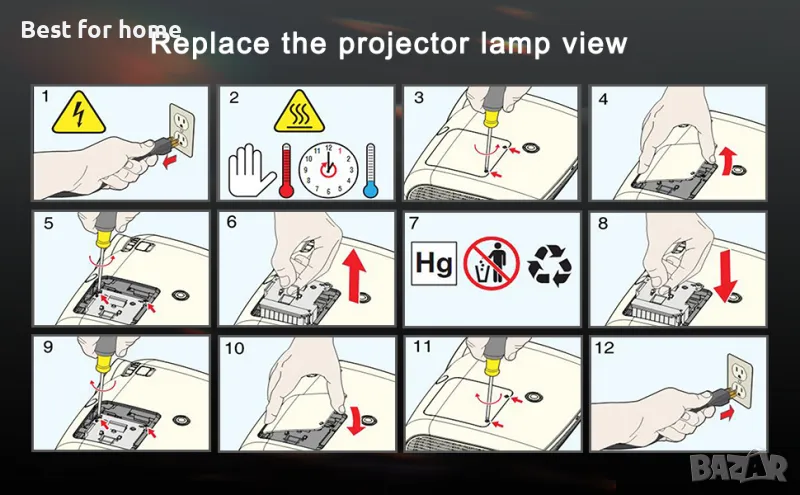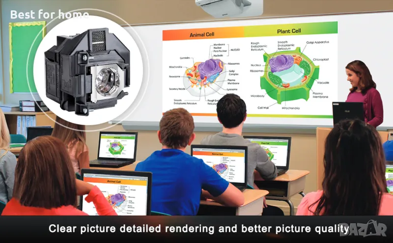 【Висококачествен корпус】 Това е електрическа крушка с корпус, което улеснява инсталирането. Корпусът му е изработен от издръжливи и здрави материали, за да предпази проектора от прегряване или необичайна температура, предпазва електрическата крушка.