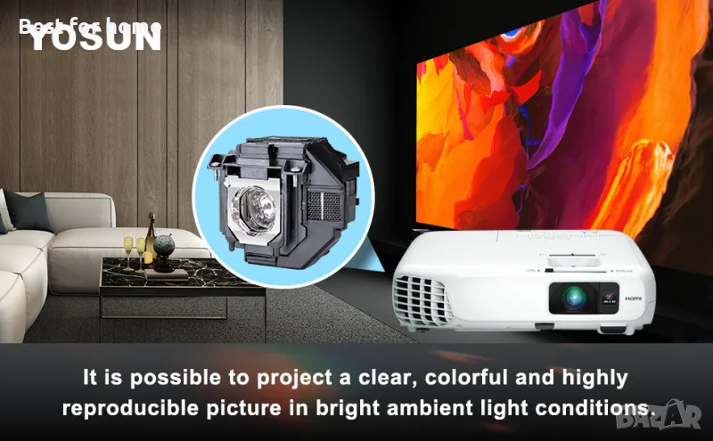 【Надграден фитил】Крушката за резервна лампа за проектор YOSUN има същата функция като оригиналната крушка, като най-новият подобрен фитил я прави по-ярка и ясна, като същевременно запазва първоначалната си функция.