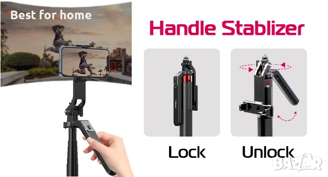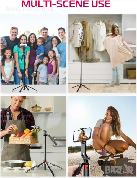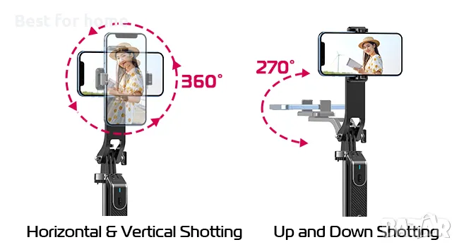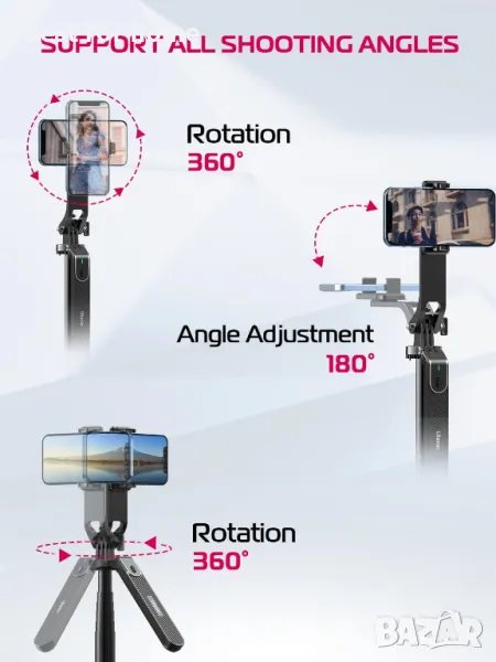 ▶【Въртяща се на 360° дръжка за балансиране】Постигнете 360° панорамно снимане, 180° снимане нагоре и надолу, нашият телефон, камера и статив за екшън камера могат да регулират различни ъгли за хоризонтално и вертикално снимане, което ви позволява да заснемете перфектния кадър. Можете също така да прикрепите екшън камера или пръстеновидно осветление, което го прави не само стойка за статив за телефон, но и спортна камера/стойка за пръстеновидно осветление