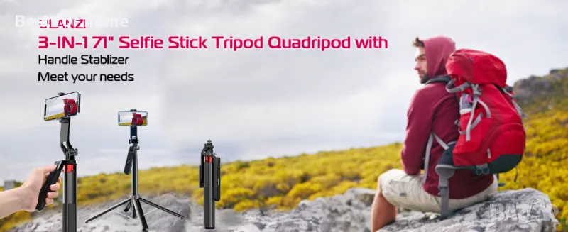 ULANZI MA09 Разтегателен статив за телефон и камери , 180 см селфи стик