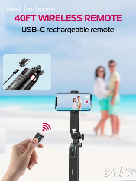 ▶【Акумулаторен USB акумулаторен безжичен дистанционен затвор тип c】Освободете ръцете си и се насладете на забавлението да правите снимки от разстояние със статива за селфи стик с дистанционно управление. Поддържа стабилна връзка на дълги разстояния до 40 фута/12 м и е съвместим с повечето смартфони като Android и iPhone. И поддържа тип C зареждане, няма нужда от смяна на батерията.