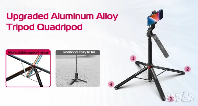 Phone Vlog Стойка за триножник Четириножник с всичко в 1 щипка за телефон, държач за телефон за статив за пътуване с акумулаторно дистанционно за iPhone Sony Canon Action Camera
