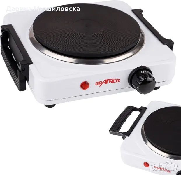 Котлонът е оборудван с издръжлива чугунена нагревателна повърхност с диаметър около 15,5 cm. Котлонът е с мощност 1000 вата, има 5 температурни нива, 4 неплъзгащи се крачета, светлинен индикатор за работа и е оборудван със защита от прегряване.