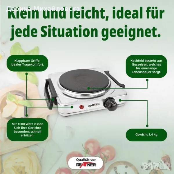 Дори и в най-малките кухни плочата е подходяща като заместител на печката, като ви дава възможност за топла храна.