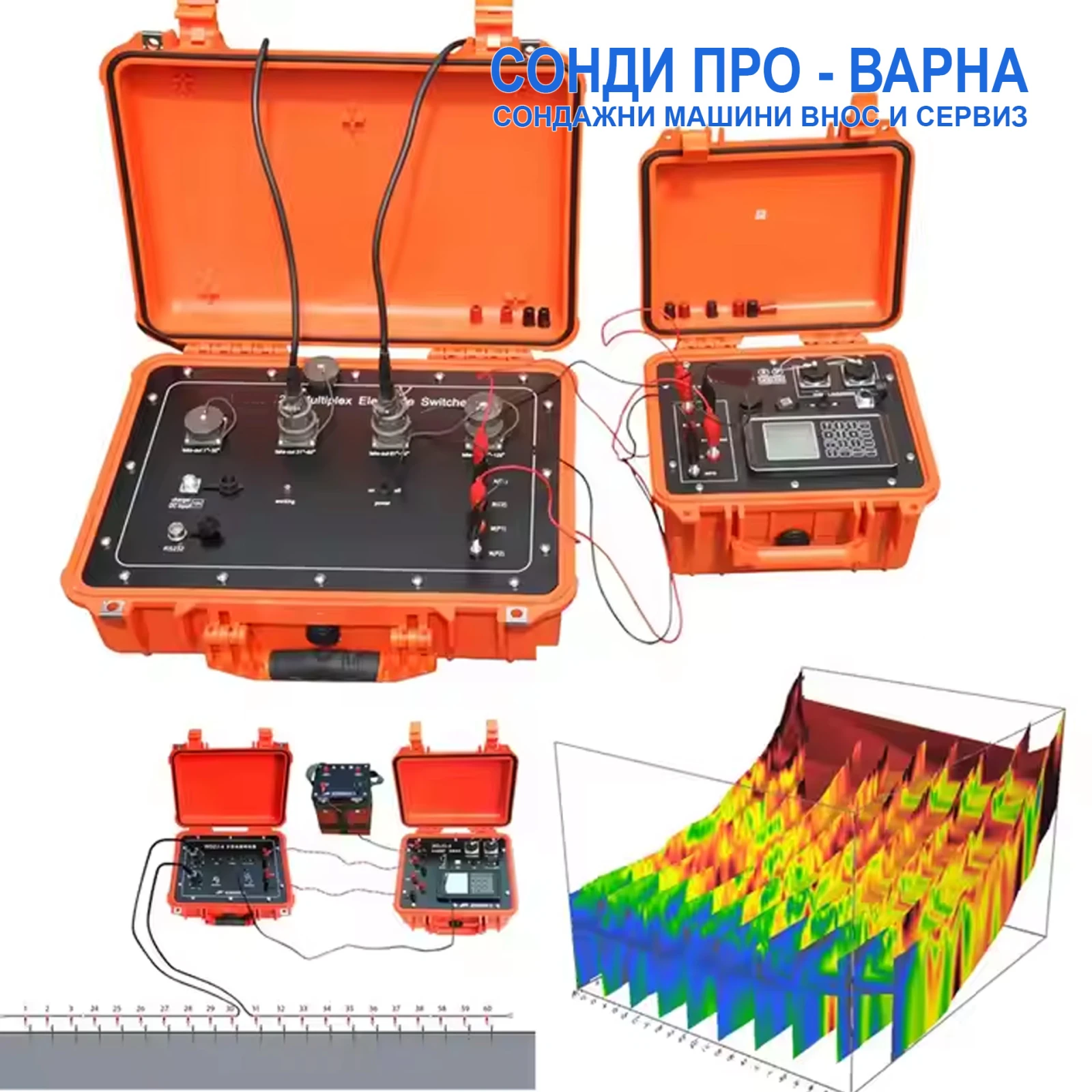 Професионален 3D електрорезистивен томограф 3D-4A-100 до 100 метра за изследване на подземни води, кухини, цветни метали, злато. . Оборудване за подземни геофизични проучвания. 3D електрорезистивен томограф 3D-4A-100 до 100 метра за изследване на подземни води, кухини, проучване на цветни метали (скъпоценни метали и залежи злато, сребро и други), наличие на вода под сгради основи, подземни течове на ВИК тръби, стени язовири и др. . Цената е с ДДС и гаранция 12 месеца*/**! (1) Производство и доставка по поръчка до 15 дена: 67200 лева с ДДС . - Други модели сондажни машини и 3D електрорезистивен томографи предлагани от Сонди Про-Варна, може да видите в mobile. bg: tamper. mobile. bg - Друго предлагано ново индустриално оборудване внос от Европа предлагано от РЕМТЕХСТРОЙ ГРУП може да видите на адрес: www. remtechstroy. eu/bg . Дълбочина на измерване: до 100 метра (5-100 метра) Измервателно трасе/трасета: 2х300 или 600 метра (30ch* X 10 m X 2 pct трасета =600m) *ch - измервателни електрода . Основно приложение: (1) Откриване на метални и неметални минерални ресурси. (2) Градски геофизични проучвания, железопътна и мостова инспекция и т. н. (3) Хидрология и инженерна геология като търсене на подземни води, инспектиране на базата на язовира и дига за защита от наводнения при поява на грешки. (4) Геотермални проучвания. . ХАРАКТЕРИСТИКИ: 1. Мултифункционална- тя е в състояние за нормално изследване на съпротивлението на земята, 2-D изследване на съпротивлението чрез многоелектроди и триизмерно изследване на съпротивлението чрез електроди. 2. Супер голяма точност: За 2-D изследване в режим I (само съпротивление), не по-малко от 43680 пъти измервания (измервателни точки). За 2-D изследване в режим II (съпротивление и ток), не по-малко от 21840 пъти измервания. За 3-D изследване (видимо съпротивление и захранващ ток), не по-малко от 32768 пъти измерване. Няма загуба на данни при изключване на захранването. 3. Разположение на електроди: повече от 18 режима на подреждане и може да се разширява за 2-D изследване. Той е способен да измерва не само фиксирано сканиране (AMNB M ABMN, AMBN, AMN, MNB, A-MN-B, SP-M, SP-MN, такса M, такса MN), но също и измерване на непрекъснато сканиране на секции ( AM, A-MN, AB-M, AB-MN, MN-B, квадрат A-MN, A-MN-B, дипол с кръстосани дупки) . ПРИЛОЖЕНИЕ: (1) Откриване на метални и неметални полезни изкопаеми (2) Аварийно сеизмично наблюдение на потока, научно изследване на земетресения, ранно предупреждение и мониторинг на земетресения, мониторинг на свлачища и каменопади; (3) Геофизични проучвания на града, жп линия и мост (4) Хидрологията и инженерната геология като търсения (5) Изградете бърз доклад за интензитета на земетресението и мрежа за ранно предупреждение за земетресение; подпочвени води, проверка на язовирната основа и защитата от наводнения (6) Система за превантивна защита на културни реликви и система за мониторинг на околната среда на съоръжения за културни реликви. (7) Геотермални проучвания