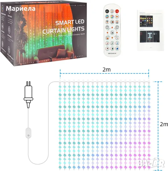 LED Светлинна Завеса 2х2 метра / 400 светодиода RGBW с IC приказни светлини