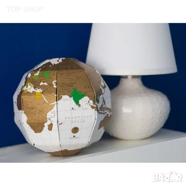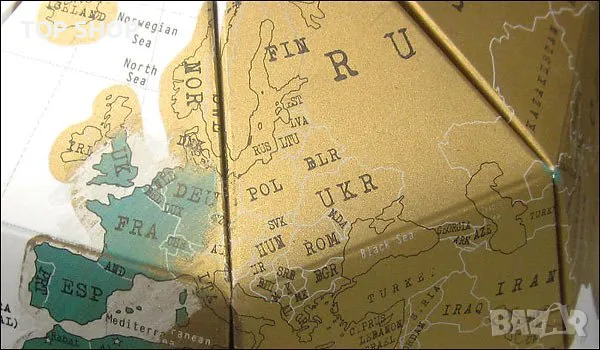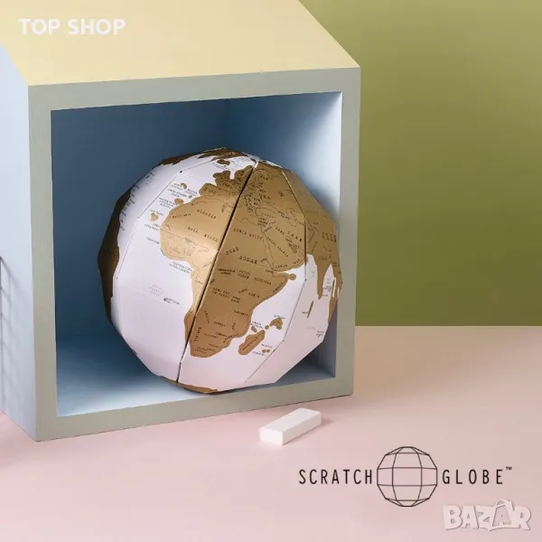 Най-новото издание на семейството на Scratch Map! Ето го, The Scratch Globe! Това наистина е карта с разлика, добре, няколко разлики. Scratch Globe е карта на света, покрита със златно фолио, която ви позволява да надраскате къде сте били на пътуванията си. Когато сте изтрили страната или континента, на който сте били, отдолу се разкрива богата и цветна карта с географски детайли. Scratch Globe се предлага плоско опакован, готов за сглобяване, така че прави отличен подарък за публикуване на някой, който наскоро се върна от кутиите си! Това е перфектният подарък за джет-сетъра в живота ви! В случай, че не сте запознати с концепцията за драпируемата карта, ето малко информация: Картата на скреч ви позволява да регистрирате пътуванията си, като надраскате горното фолио на мястото, което сте посетили, разкривайки цветна карта отдолу и давайки ти красива, интерактивна и 100% персонализирана карта на света. Сърбеж за пътуване? Драскайте го !!