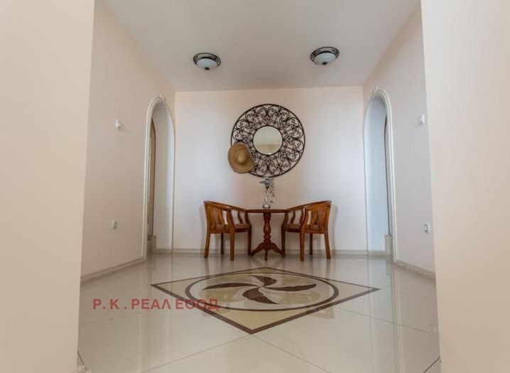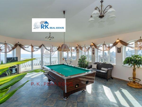 1 етаж с 2 самост.входа. 1 вход от голяма веранда с гледка към цветна градина и морето,към вестибюл 2 големи стаи с баня и тоалет към тях 2 вход към входно антре с вътр.стълбище и един самост.апартамент състоящ се от хол с кухн.кът ,спалня с баня и тоалет. От първия етаж има връзка със спортна зала с шведска стена с баня и тоалет към нея.