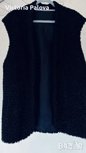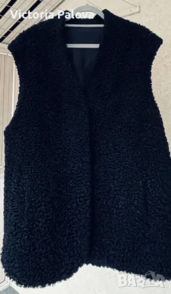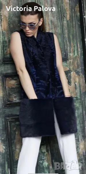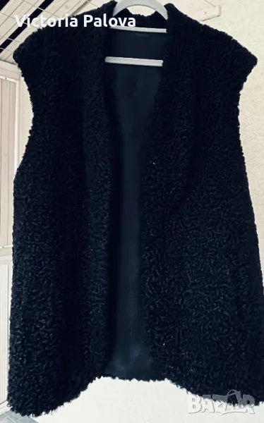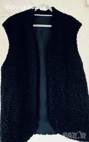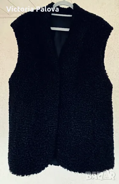 Нов много красив елек, идеална кройка и изпълнение, стои като сако без ръкави, много стилен, два джоба, цепки 15 см. Рамо - 53см, ГО - 59-60см, дължина - 84см. Астраган - материя, която се отличава със своята изключителна топлина, издръжливост и престиж. Астраганът е фин вид овча кожа с къс, къдрокос косъм, използван в луксозни изделия и свързан с висока класа и елегантност. Елекът е подходящ за комбинация както с ежедневни, така и с елегантни тоалети, създава усещане за лукс и подчертава индивидуалния стил на притежателката си.