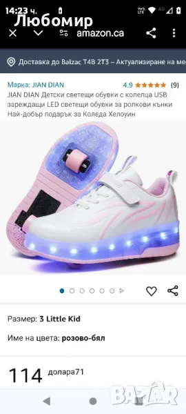 JIAN DIAN Детски светещи обувки с колелца USB зареждащи LED светещи обувки за ролкови кънки