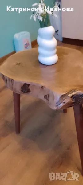 Стенен каменен часовник и 2 дървени масички-лакирана и необработено дърво ,може и поотделно → Обява 48471925