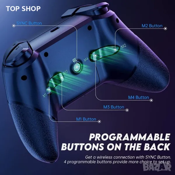 【Ергономична и безжична връзка】 С ергономичен дизайн, ръкохватката на дръжката има уникална текстура, която я прави неплъзгаща се и удобна за хващане. Използване на технология за безжична Bluetooth връзка, 10 метра стабилно разстояние за предаване, така че да можете да играете без робство
