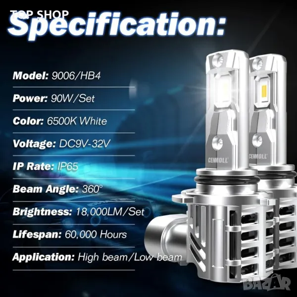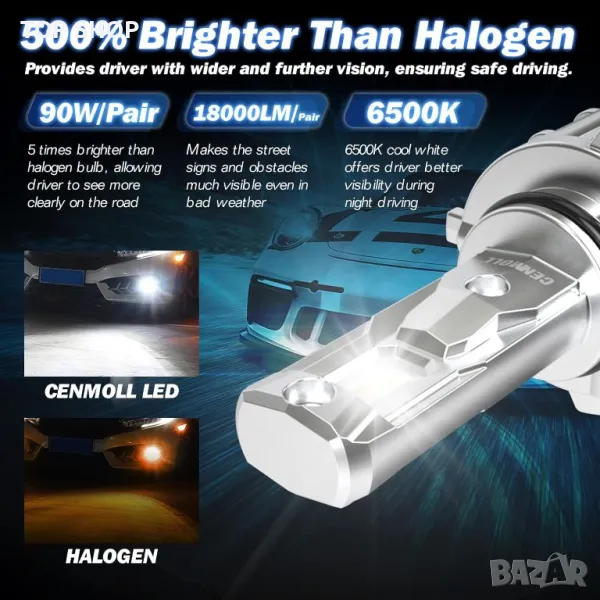 Крушки Cenmoll H4 Led крушка, 6500K 18000LM 500% яркост