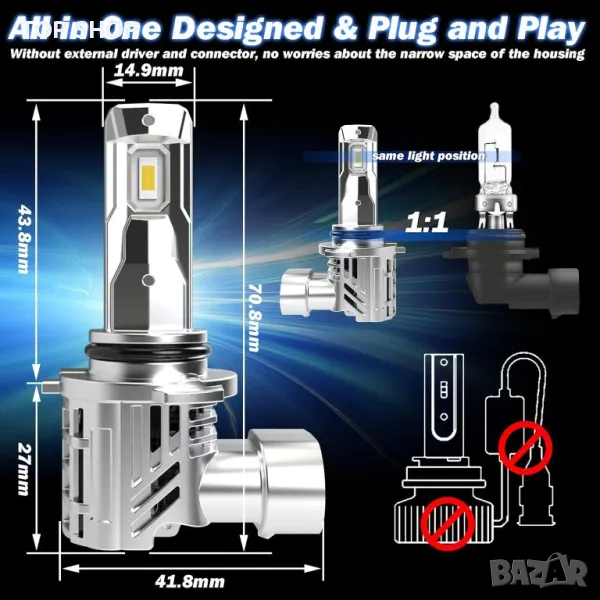 Вграден надграден интелигентен IC драйвер, съвместим с 99% от превозните средства без проблеми с грешки в компютърната система. Забележка: Някои чувствителни модели може да изискват canbus декодер или резистор за натоварване.