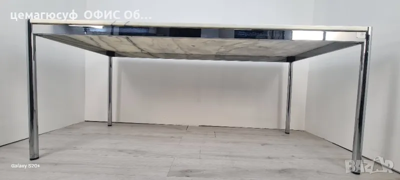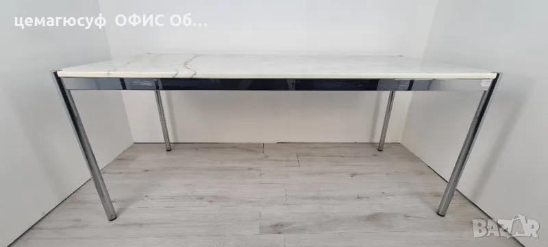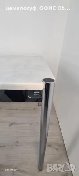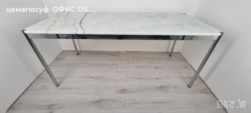 Предлагаме високо качествени, швейцарски Бюро от марката USM Haller, класическа мраморна маса за офис или дома, обзавеждане внос от германия Уникална мраморна маса USM Haller Размер; / 175см Ш/ / 75см Д/ / 74см В/тегло 90 килограма,Каталожна цена 2450,00 € Продава се тази уникална, изключително висококачествена маса USM Haller с красив плот от естествен камък Nero Marquina!Перфектен за висококачествени жилищни пространства или офиси.Шестима души могат да седнат удобно на масата.Повърхността на масата е гласова и трябва да следвате инструкциите за грижа за естествения камък Nero Marquina!Най-добре е да видите страхотната маса лично в нашия шоурум в Асеновград и да се убедите сами!Чувствайте се свободни да се свържете с нас, ако имате въпроси.Предлагамеи със висококачествени от дървени плотове от орех от марката на usm haller Размери: /150см Ш//75см Д//74см В/ С бял плот Цена 690лвКаталожна цена 2679лв;Размери: 175см/Ш 75см/Д 74см В/С бял плот и бежовоцена 880лв каталожна цена 3445лв, Размери: /200см Ш/ /75см Д//74см В/ цвят на плота бяло Като цена 1080лв Каталожна цена 3847лв,Конструкция метална хромирана стомана,марката на usm haller дават петдесет години гаранция;Имаме всякакви размери;150см х 75см 175см х 75см200см х 75см състояние: много доброМасата на USM Haller е абсолютен акцент и вероятно не се нуждае от твърде много представяне. Без значение дали искате да я използвате като