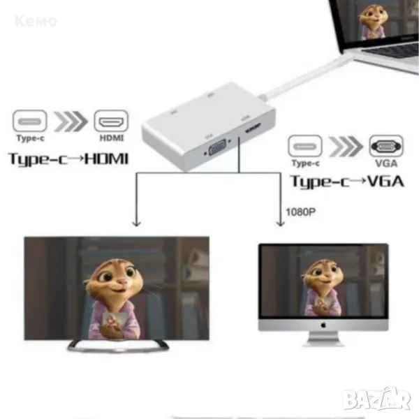 този компактен хъб преобразува сигнала към проектор, монитор или телевизор за