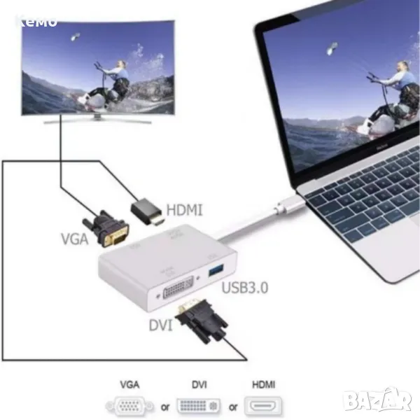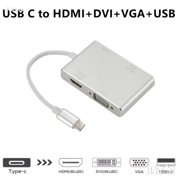 Открийте универсалния 4-в-1 USB-C адаптер, който осигурява 4K HDMI, VGA, DVI