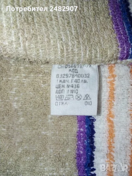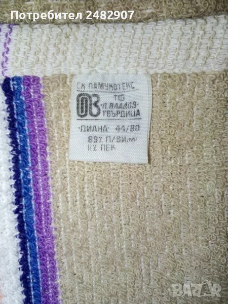 Хавлиена кърпа от времето на соца. Съдържа 100 % памук. Размери - 43/81 см. Чисто нова, не е използвана.