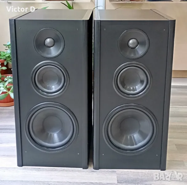 Качествени тонколони !Технически перфектни с идеални говорители.3-ленти bass reflex.Добро визуално състояние с лека забележка по фолиото на едната.Приложил съм снимка.Dimensions: 235 x 486 x 323 mm (WxHxD).Weight: 10 kg
