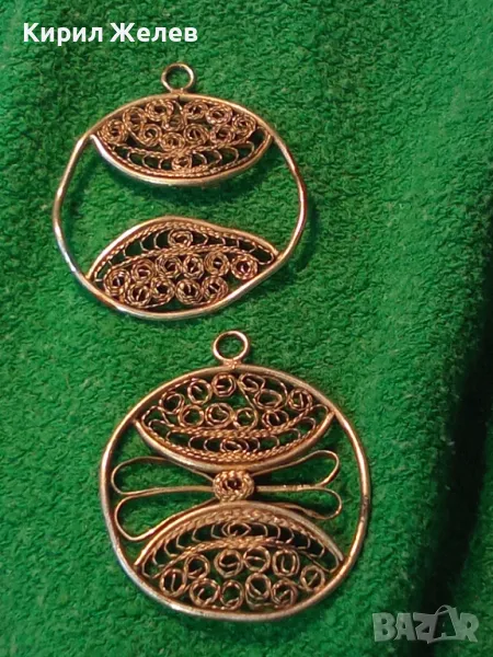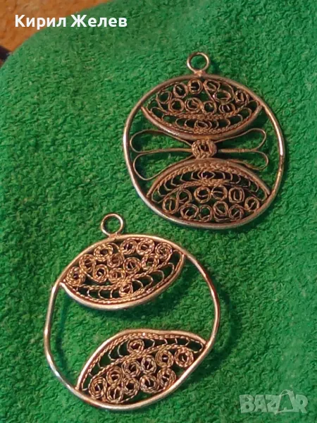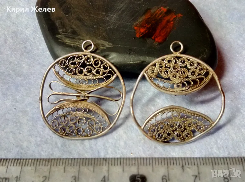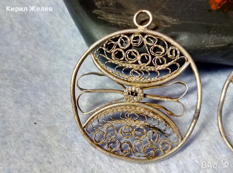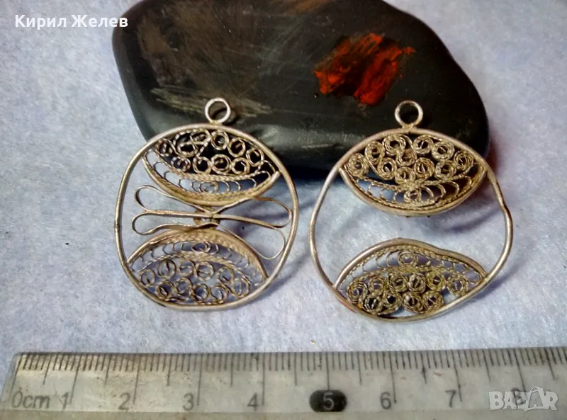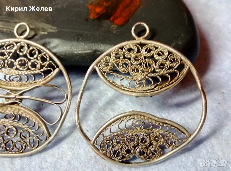 ДВЕ СТАРИННИ ФИЛИГРАННИ СРЕБЪРНИ ВИСУЛКИ ВИСОКА ПРОБА СРЕБРО РЕТРО НАКИТИ РЪЧНА РАБОТА 48582
