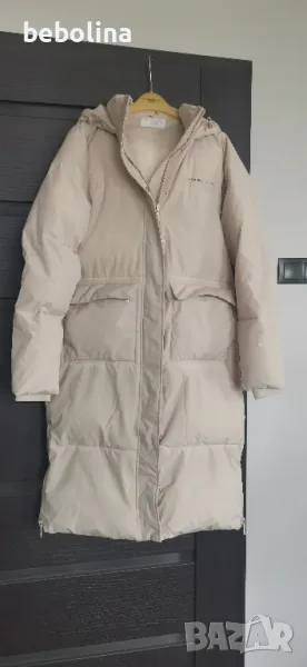 Дамско зимно дълго яке ,странични ципове ,качулка.Цвят беж.Пиша ново защото е махнат само етикета.