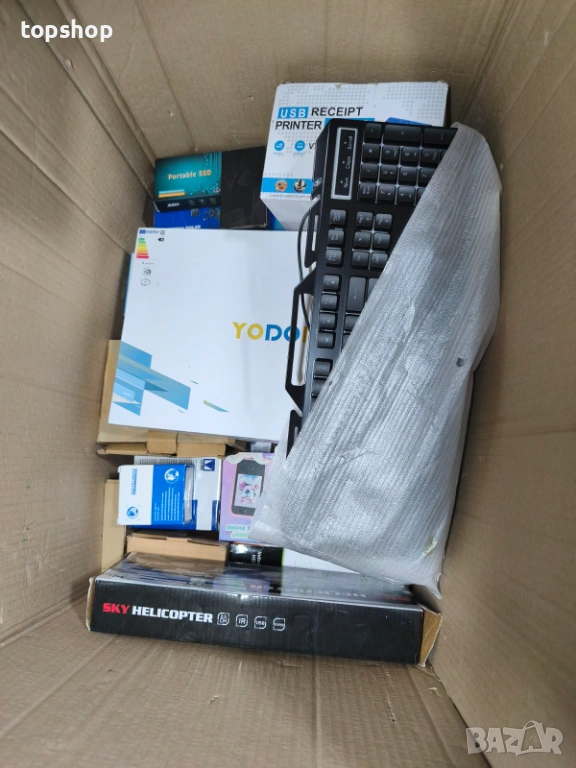 ИСТИНСКИ МИКС: Всеки кашон е различен! Вътре може да намерите от електроника и джаджи до детски играчки и домашни потреби.