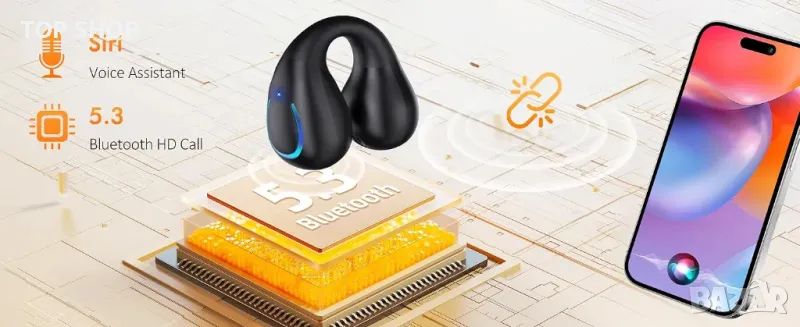 Безжични слушалки Bluetooth 5.3, спортни слушалки
