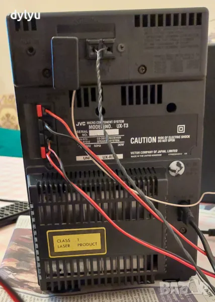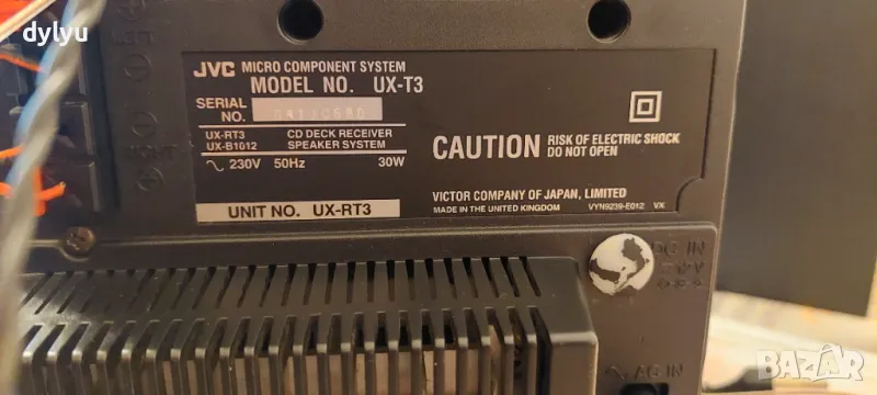 Продавам аудио система JVC UX-T3 (UX-RT3) с две тонколони модел UX-BS1012 и оригинално дистанционно RM-RXUT3. Системата е в много добро визуално и (донякъде) добро техническо състояние. Има захранващ кабел и две антени в комплекта.