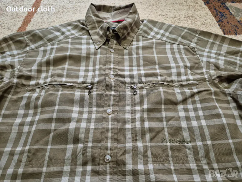 Качествена трисезонна риза на топ бранда Schoffel.Направена от здрава, но мека бързосъхнеща материя. Двойни копчета на маншетите на ръкавите,два джоба на гърдите с ципове, фабрично предвидена да се навиват ръкавите.