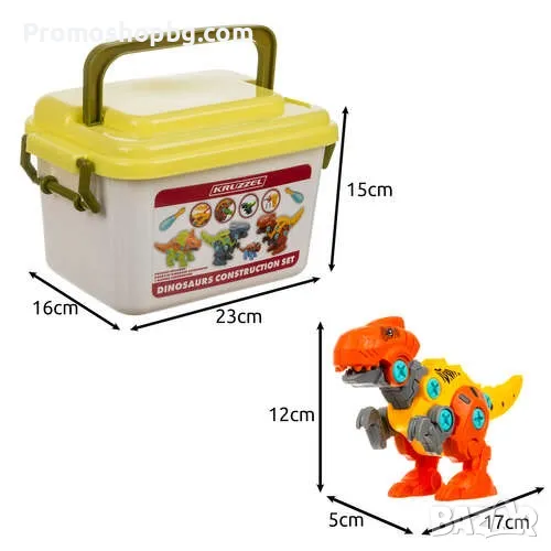 Динозаври за сглобяване 4 бр., винтоверт и отвертки
