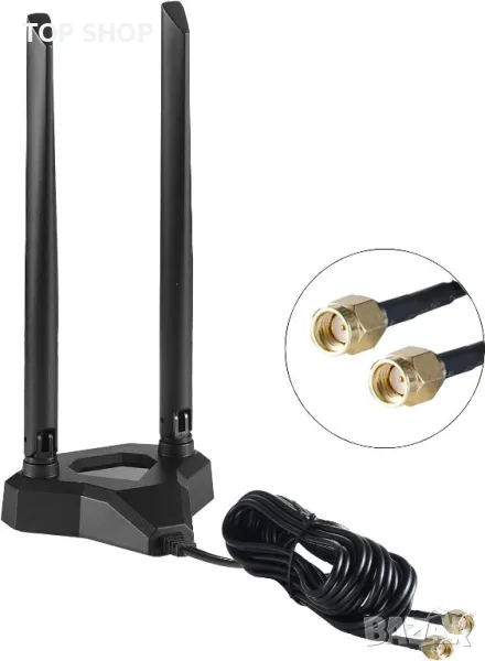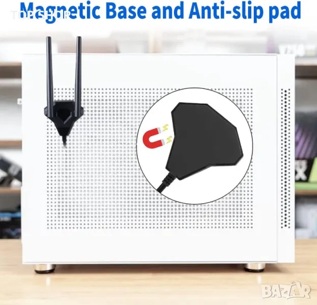 Двулентов WiFi 2.4GHz 5GHz 5.8GHz RP-SMA мъжка WiFi антена с магнитна основа за PC настолен компютър PCI-E WiFi мрежова карта USB WiFi адаптер
