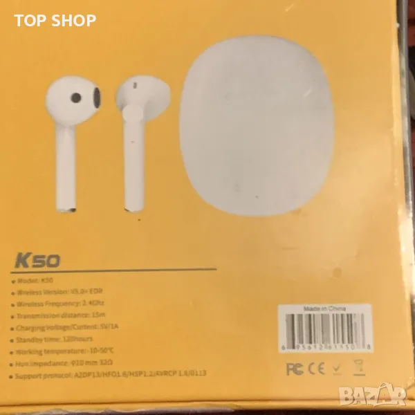 K50 TWS Wireless Earbuds слушалки за поставяне в ушите Bluetooth 5.0 сензор за докосване бял
