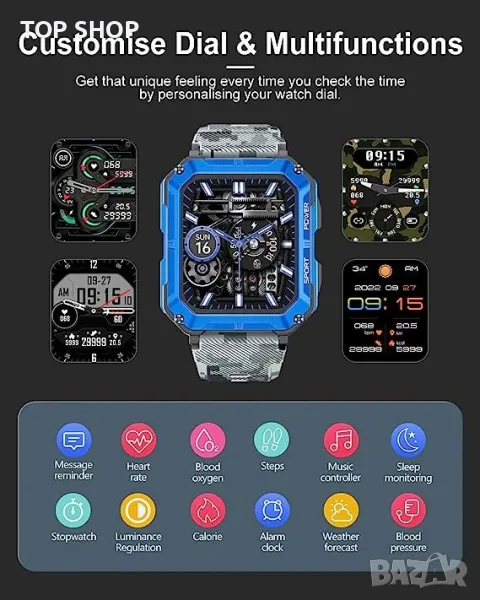 [Изследвайте на открито без ограничения]: Тактическият умен часовник за открито има метален корпус с цяло тяло с водоустойчив и прахоустойчив рейтинг IP68, достатъчно издръжлив, за да издържи на сурови външни среди, което ви позволява да изследвате по-добре открито. Освен това, този часовник поддържа 19 спортни режима, покриващи нуждите на спортните ентусиасти както на закрито, така и на открито.