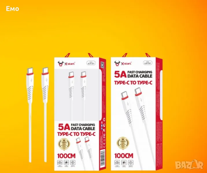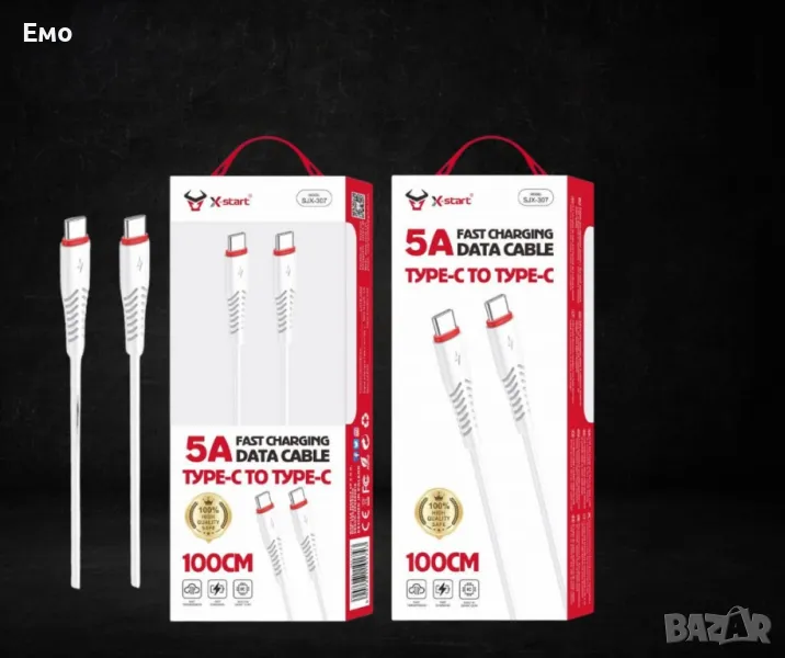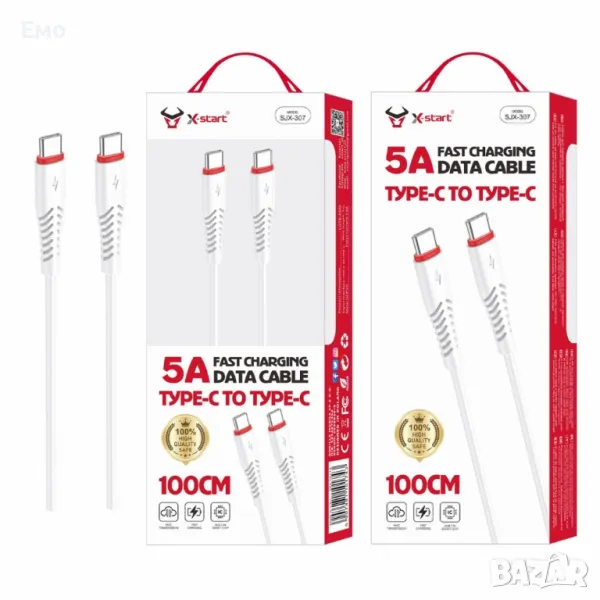 Кабел за бързо зареждане - SJX-307, 5A, Type-C към Type-C, 100cm