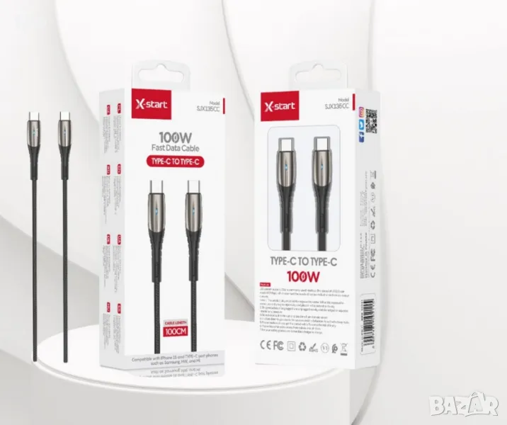 Кабел за бързо зареждане - SJX135CC, Type-C to Type-C - 100W