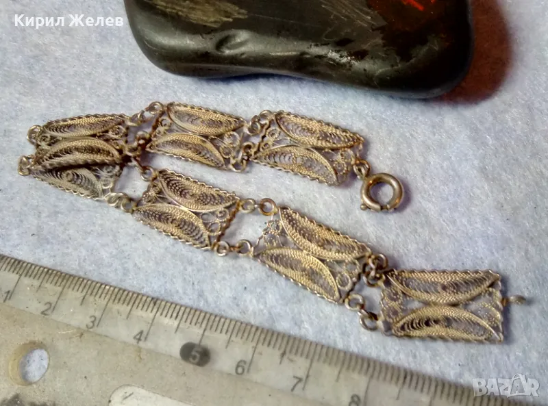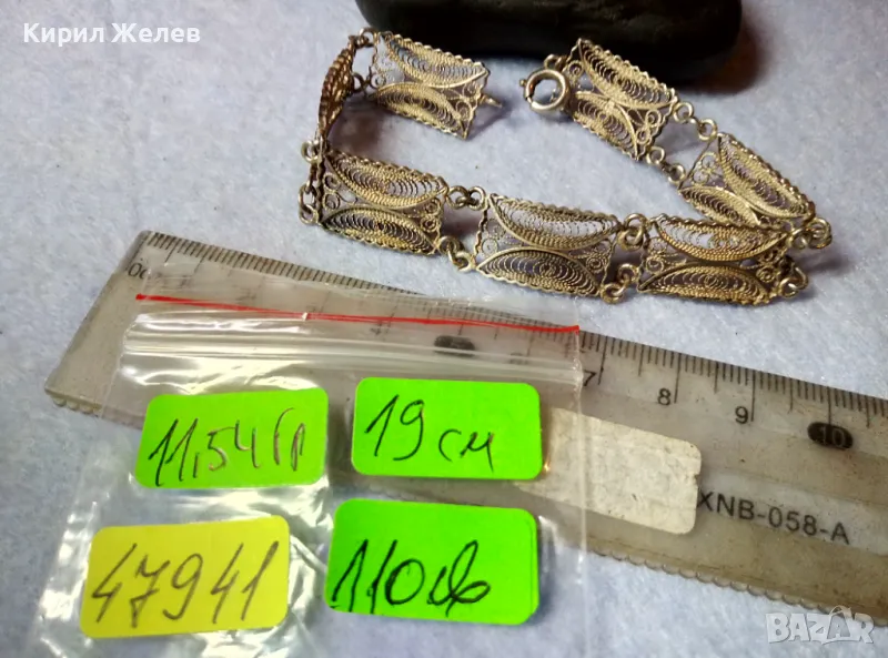 Пускам СЕРИЯ от майсторска ръчна изработка старинни и нови СРЕБЪРНИ БИЖУТА - брошки, медальони, камеи, пафти, гривни, ланци, колиета, някои са инкрустирани със скъпоценни или полускъпоценни камъни. Всичките са ТЕСТВАНИ ПРОФЕСИОНАЛНО върху лидийски камък с пробер - киселина за сребро, като особено по-старите, ръчно изработени и без маркировка които са, е заснето и резултата на камъка - яркочервеният цвят при натъркване и капване на киселината показва, че са от масивно СРЕБРО ВИСОКА ПРОБА. Има и накити от САЧАН /нископробна сребърна сплав, с която са работели старите майстори - куюмджии от периода на ВЪЗРАЖДАНЕТО и края на 19-ти век/, мед, бронз и благородна стомана с позлата или посребряване. Снимките ги ОНАГЛЕДЯВАТ! Имам НАД 27000 обяви в профила си - За ВСЕКИ по НЕЩО...! Изпращам по Еконт или Спиди с опция Преглед/Тест и отстъпка-транспорт.