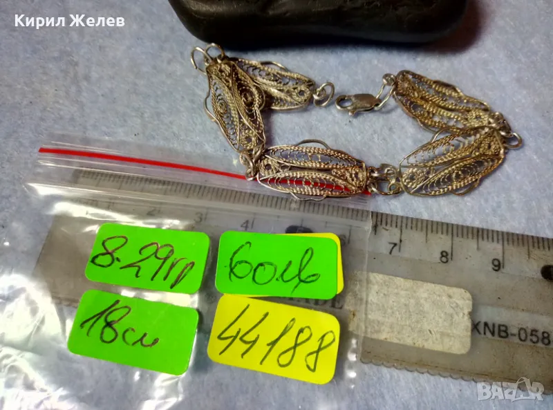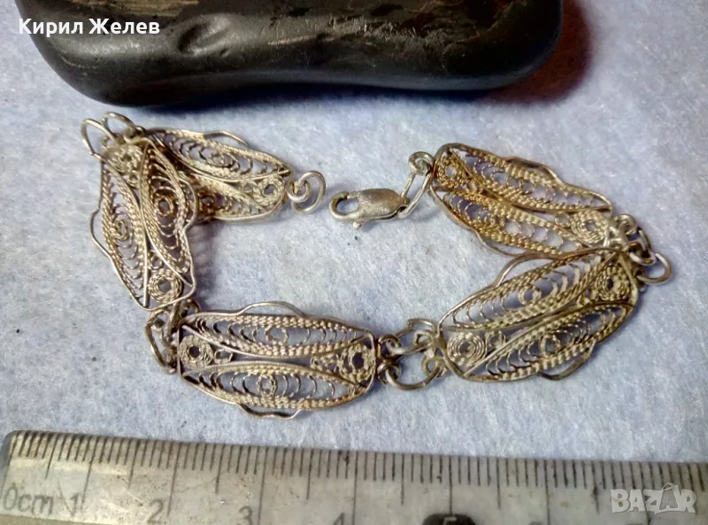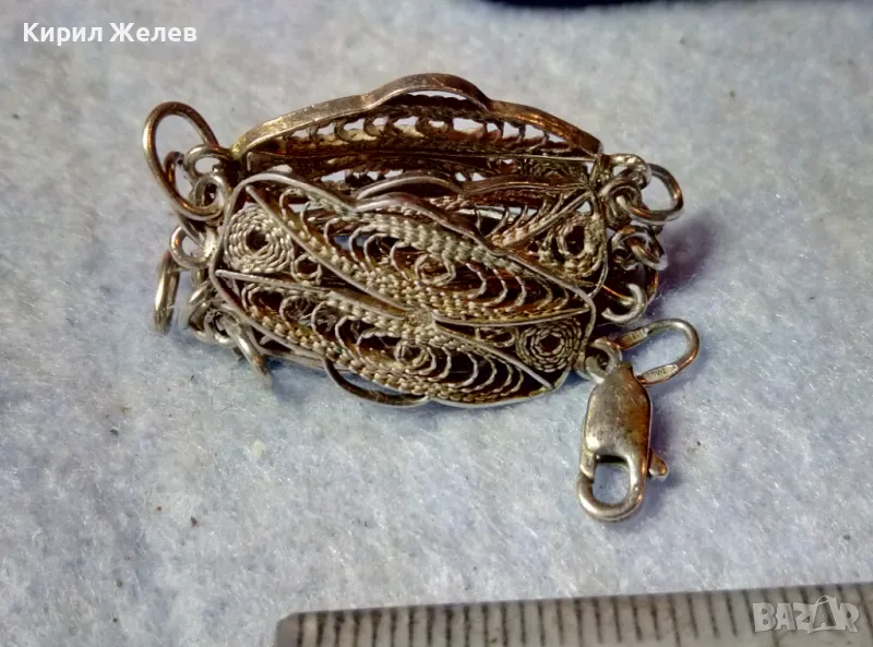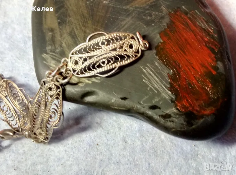 Пускам СЕРИЯ от майсторска ръчна изработка старинни и нови СРЕБЪРНИ БИЖУТА - брошки, медальони, камеи, пафти, гривни, ланци, колиета, някои са инкрустирани със скъпоценни или полускъпоценни камъни. Всичките са ТЕСТВАНИ ПРОФЕСИОНАЛНО върху лидийски камък с пробер - киселина за сребро, като особено по-старите, ръчно изработени и без маркировка които са, е заснето и резултата на камъка - яркочервеният цвят при натъркване и капване на киселината показва, че са от масивно СРЕБРО ВИСОКА ПРОБА. Има и накити от САЧАН /нископробна сребърна сплав, с която са работели старите майстори - куюмджии от периода на ВЪЗРАЖДАНЕТО и края на 19-ти век/, мед, бронз и благородна стомана с позлата или посребряване. Снимките ги ОНАГЛЕДЯВАТ! Имам НАД 27000 обяви в профила си - За ВСЕКИ по НЕЩО...! Изпращам по Еконт или Спиди с опция Преглед/Тест и отстъпка-транспорт.