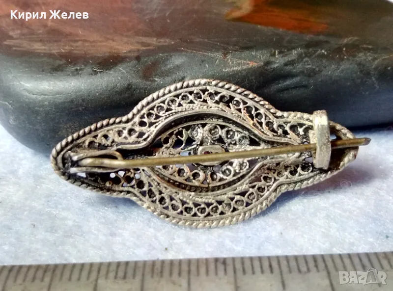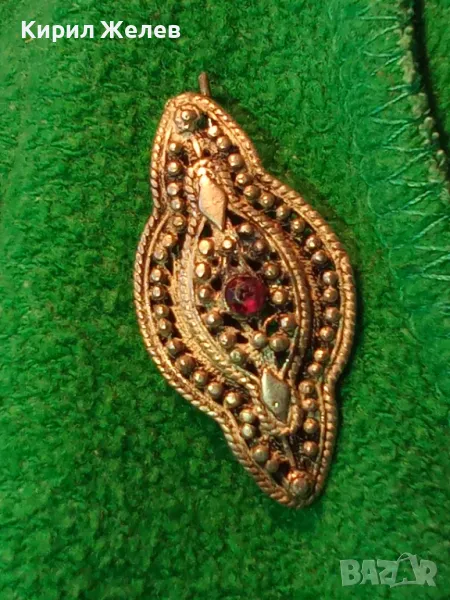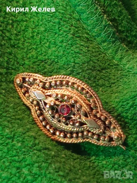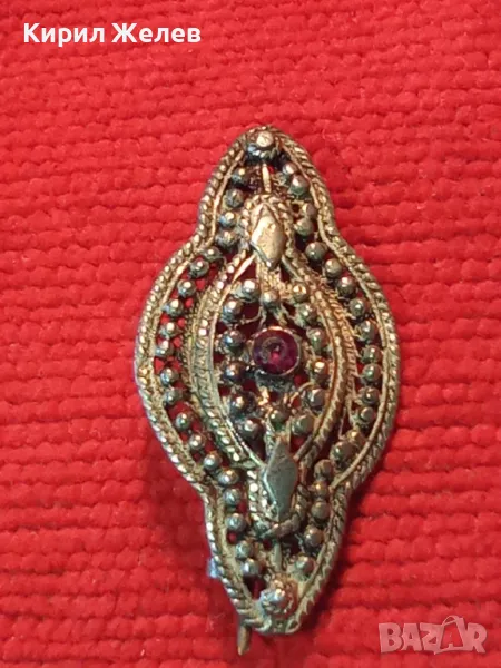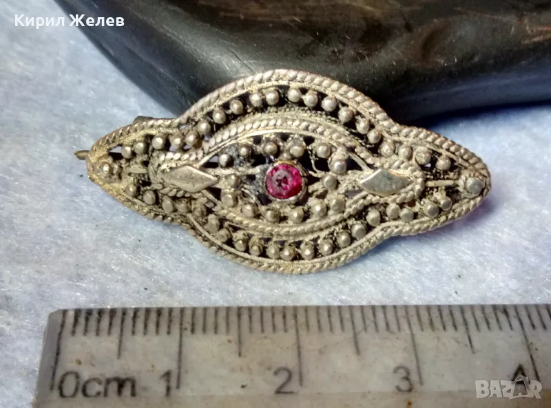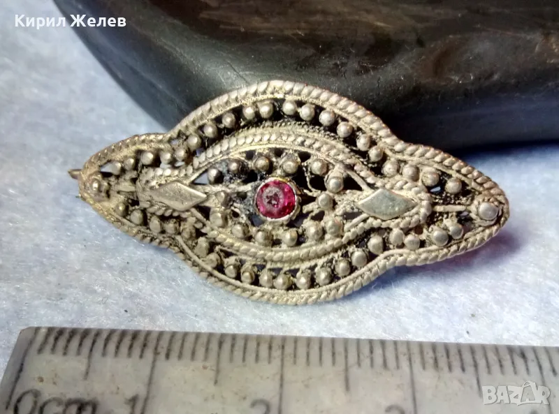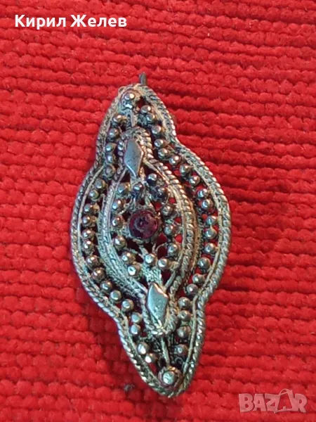 СТАРИННА СКЪПОЦЕННА ФИЛИГРАННА СРЕБЪРНА БРОШКА ВИСОКА ПРОБА СРЕБРО с НАТУРАЛЕН РУБИН 47936