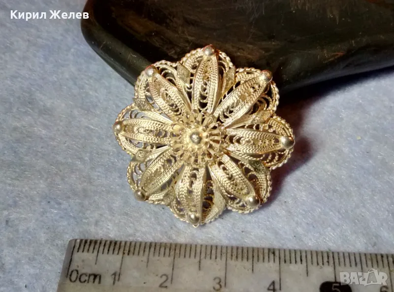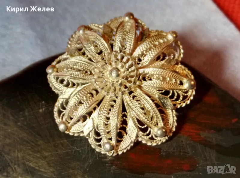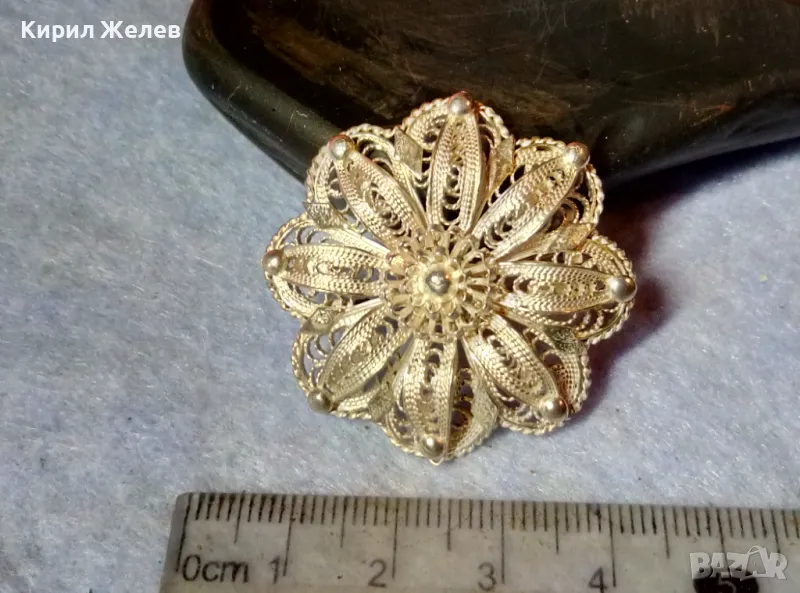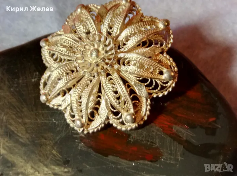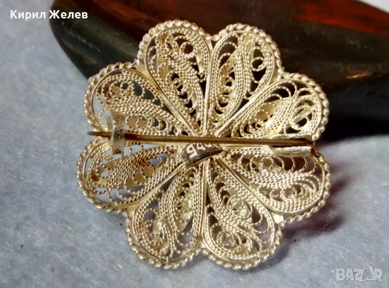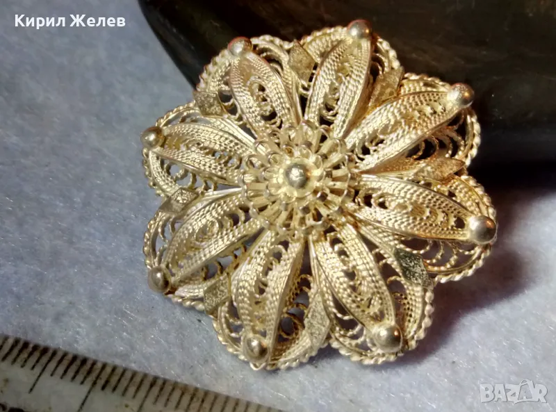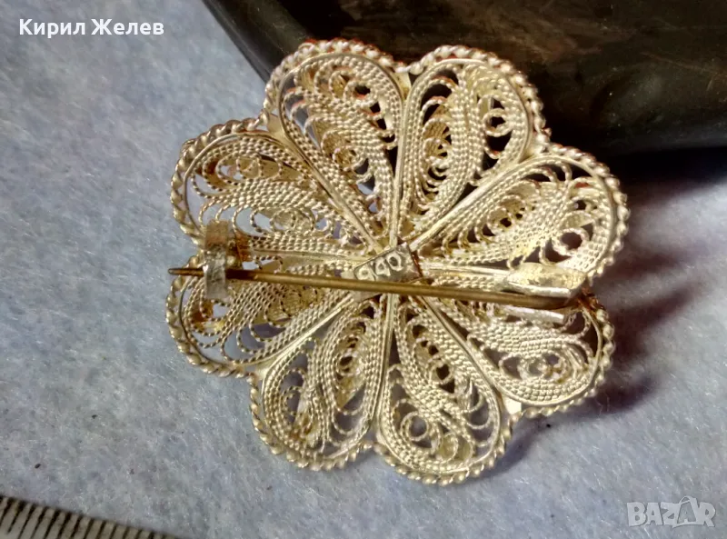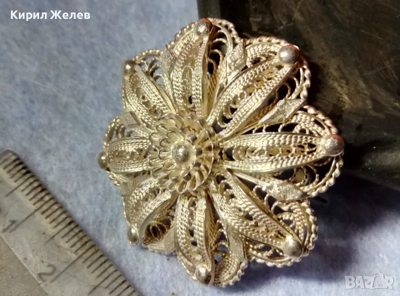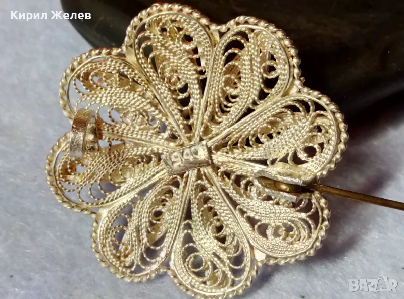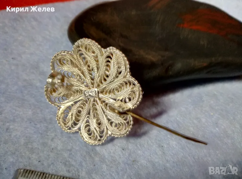 ПРЕКРАСНА СТАРА ФИЛИГРАННА СРЕБЪРНА БРОШКА ЦВЕТЕ СРЕБРО 900 НЕЖНА РЪЧНА МАЙСТОРСКА ИЗРАБОТКА 47964