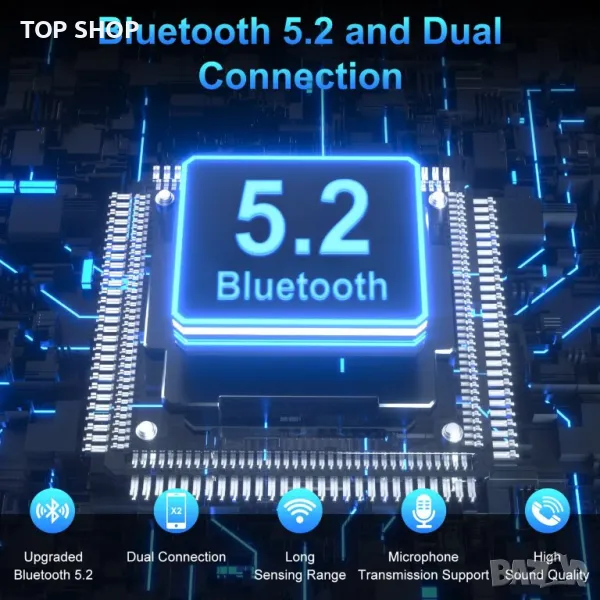 Вграден най-нов Bluetooth 5.2 модул, по-ниска латентност, по-силна защита срещу смущения, по-ниска консумация на енергия.